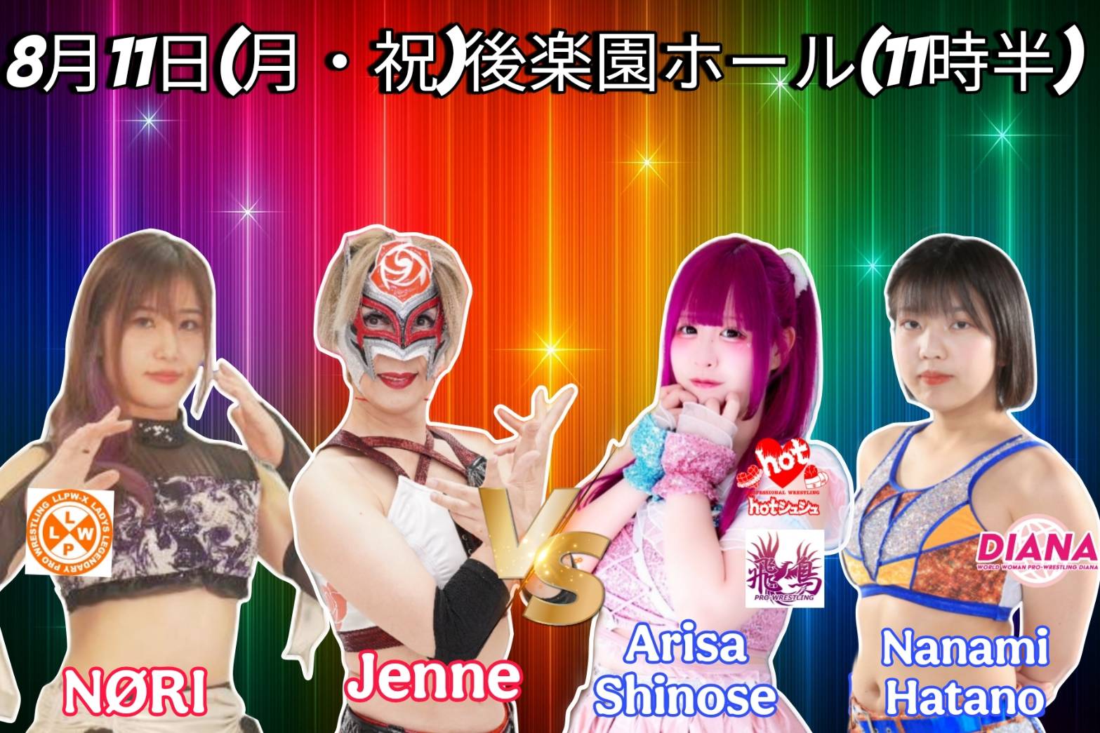 ジェンヌ&NØRI(LLPWーX)vs 羽多乃ナナミ(ディアナ)&しのせ愛梨紗(飛鳥プロレス&hotシュシュ)