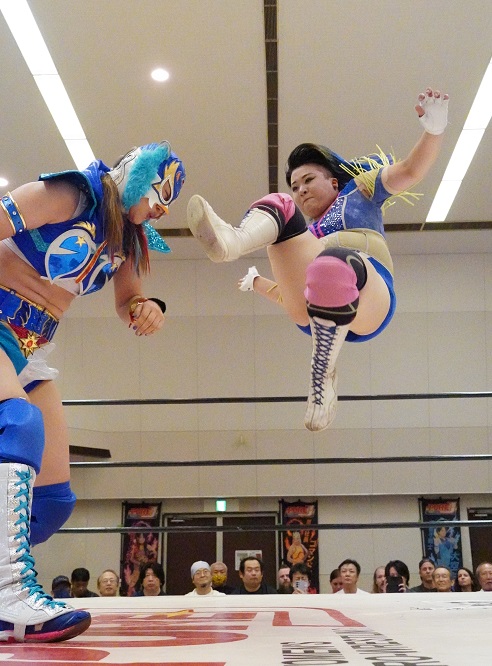セミファイナルはLeon&AKARIvs中森華子&スーパーWという異色カード。
