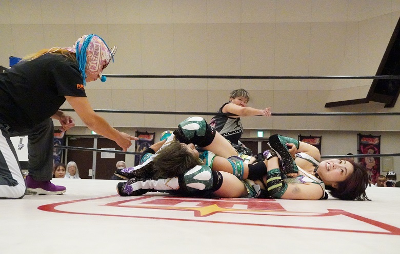 ○Leon&AKARI(13分35秒、片エビ固め)中森華子&スーパーW●