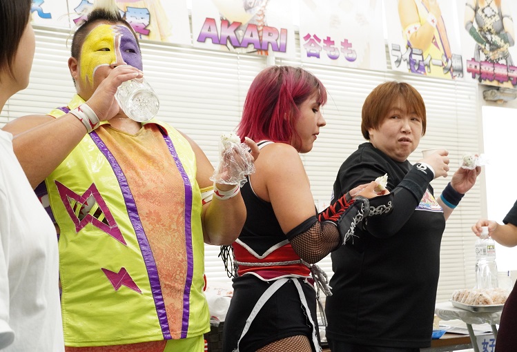第1試合ではライディーン鋼とAKARIが道場マッチ名物の“おにぎり完食ルール”でシングル対決。