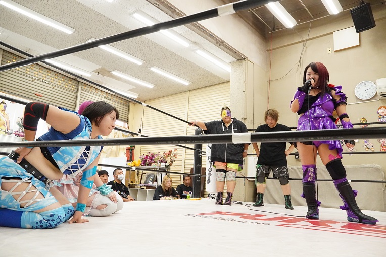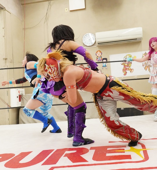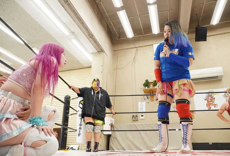 (愛梨紗に対して)このPURE-Jのリングでも味わわせてやるよ、ピンクちゃん」