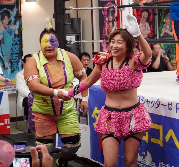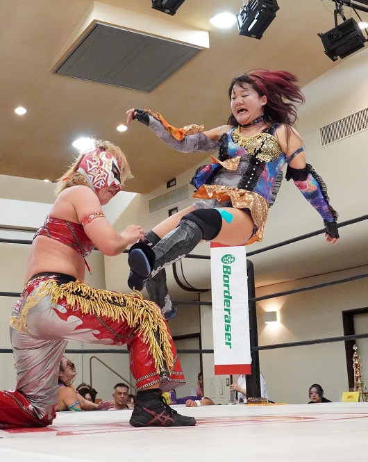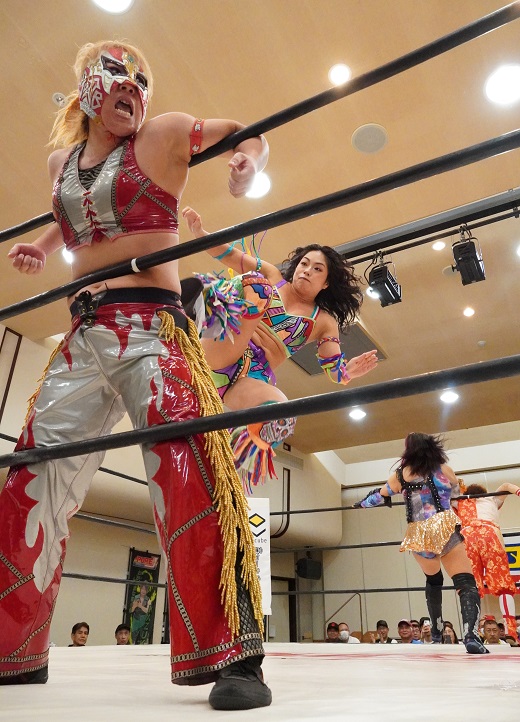 オープニングマッチではAKARIがしのせ愛梨紗とのタッグで、
