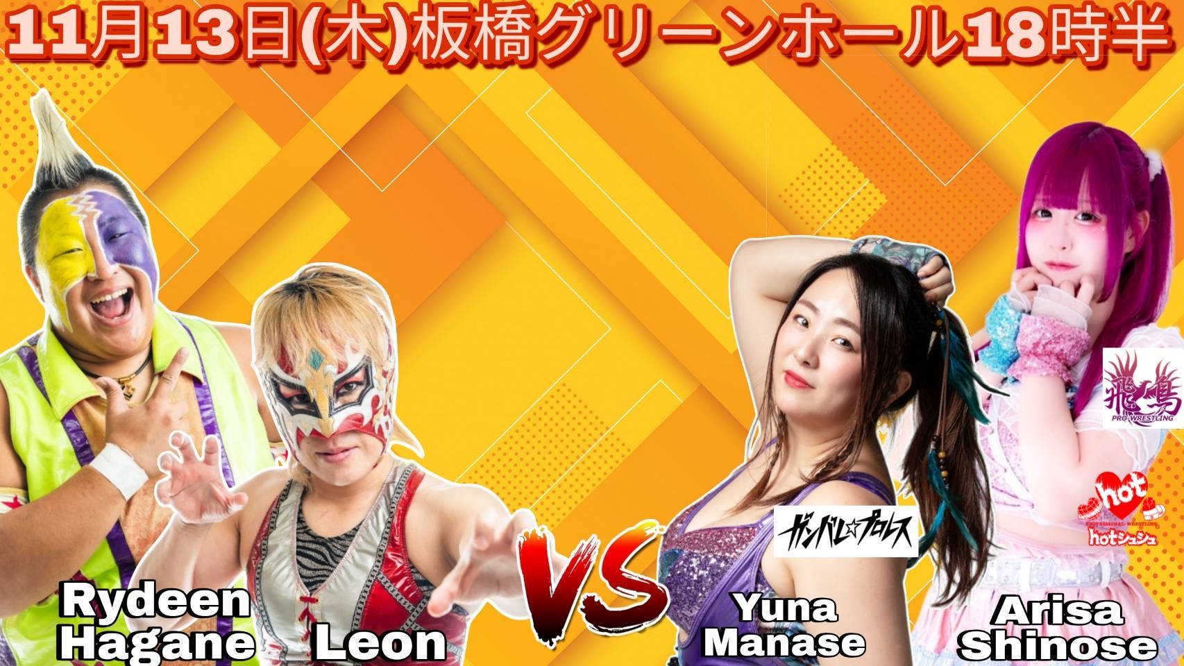 Leon&ライディーン鋼 vs まなせゆうな(ガンバレ☆プロレス)&しのせ愛梨紗(飛鳥プロレス&hotシュシュ)