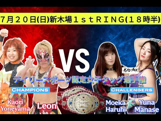 【王者組】Leon&米山香織 vs 春日萌花(ガンバレ☆プロレス)&まなせゆうな(ガンバレ☆プロレス)【挑戦者組】