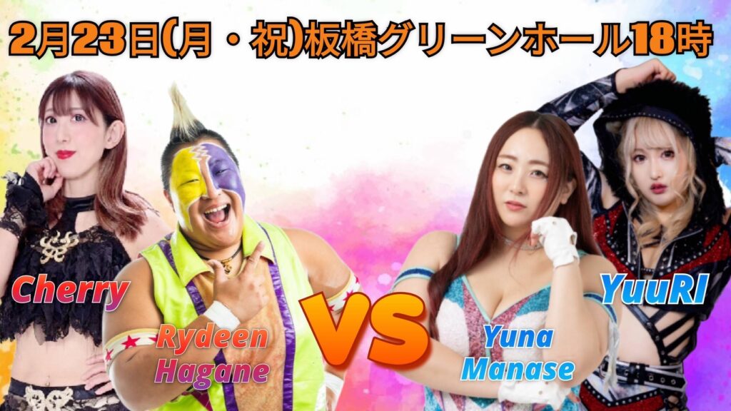 ライディーン鋼&チェリー vs YuuRI&大家建(ガンバレ☆プロレス)