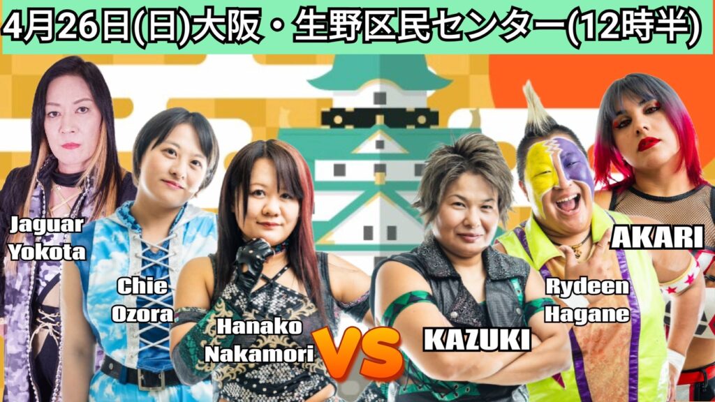 中森華子&ジャガー横田(ディアナ)&大空ちえ vs KAZUKI&ライディーン鋼&AKARI