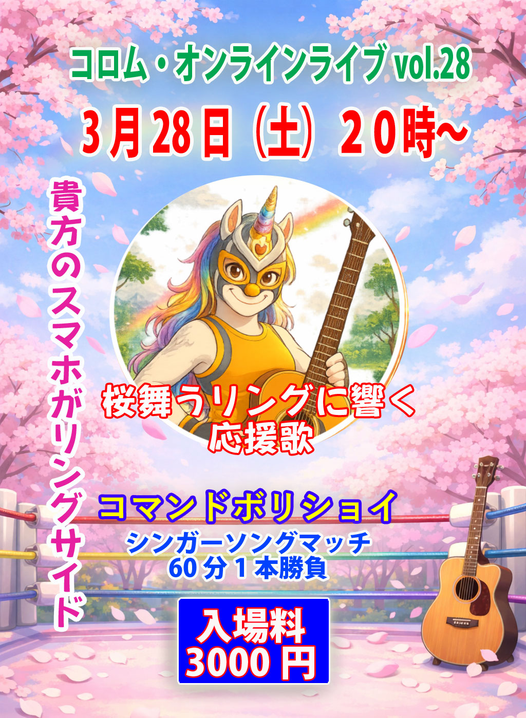 【ライブ情報】3月28日(土) コロム・オンラインライブvol.28 20時