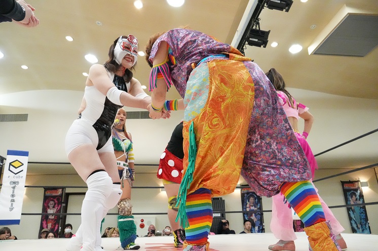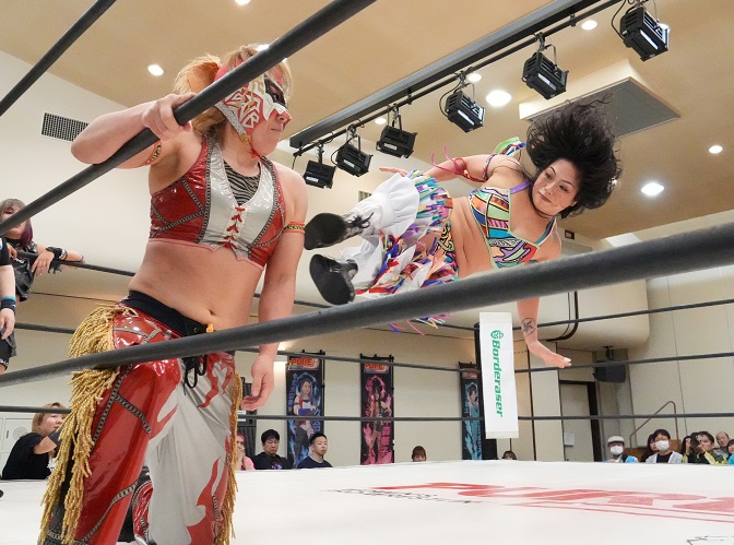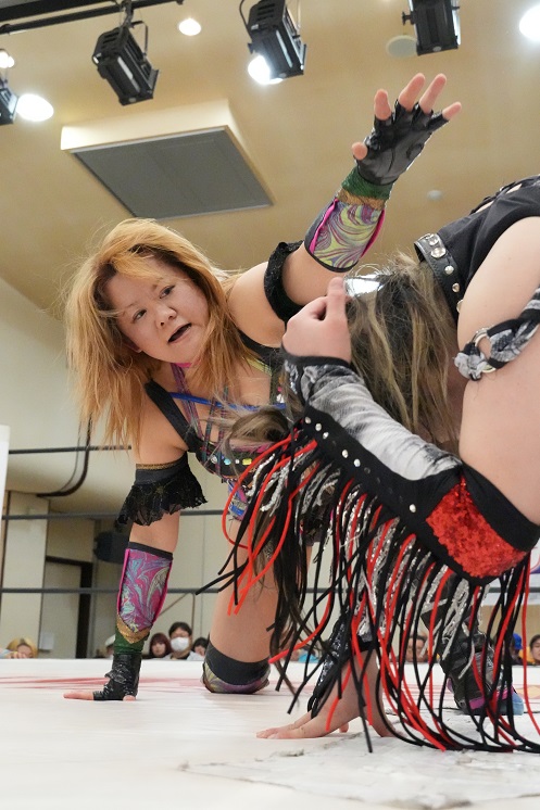 セミファイナルではLeonが前回対戦した咲村良子とタッグを結成し、AKARIは小林香萌と並び立つ。