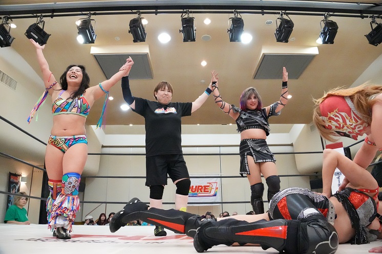 ◯久令愛&米山香織&チェリー(12分35秒、横入り式エビ固め)ジェンヌ&SAKI&三二一ちゃん●