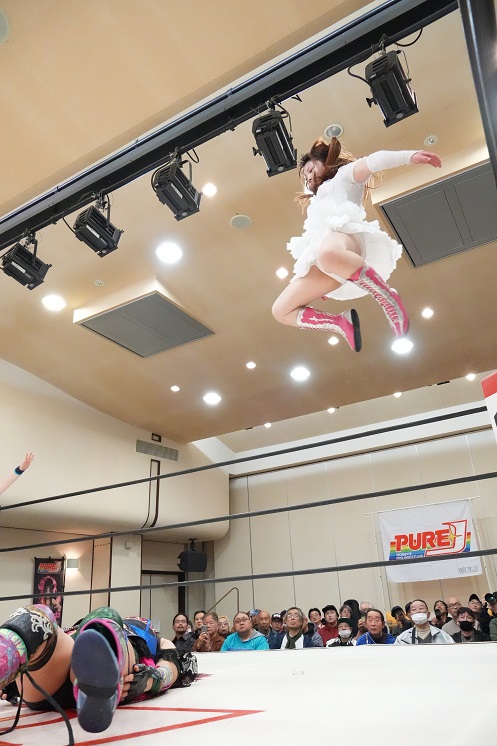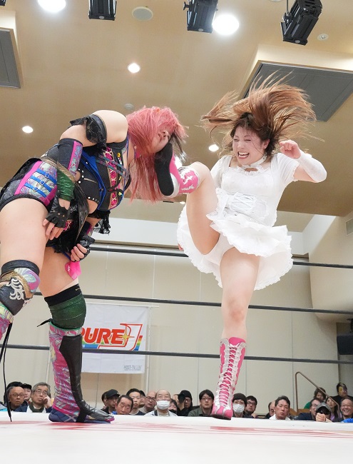 第1試合はPURE-Jでもっともキャリアの短いジェンヌと未愛の初対決で、