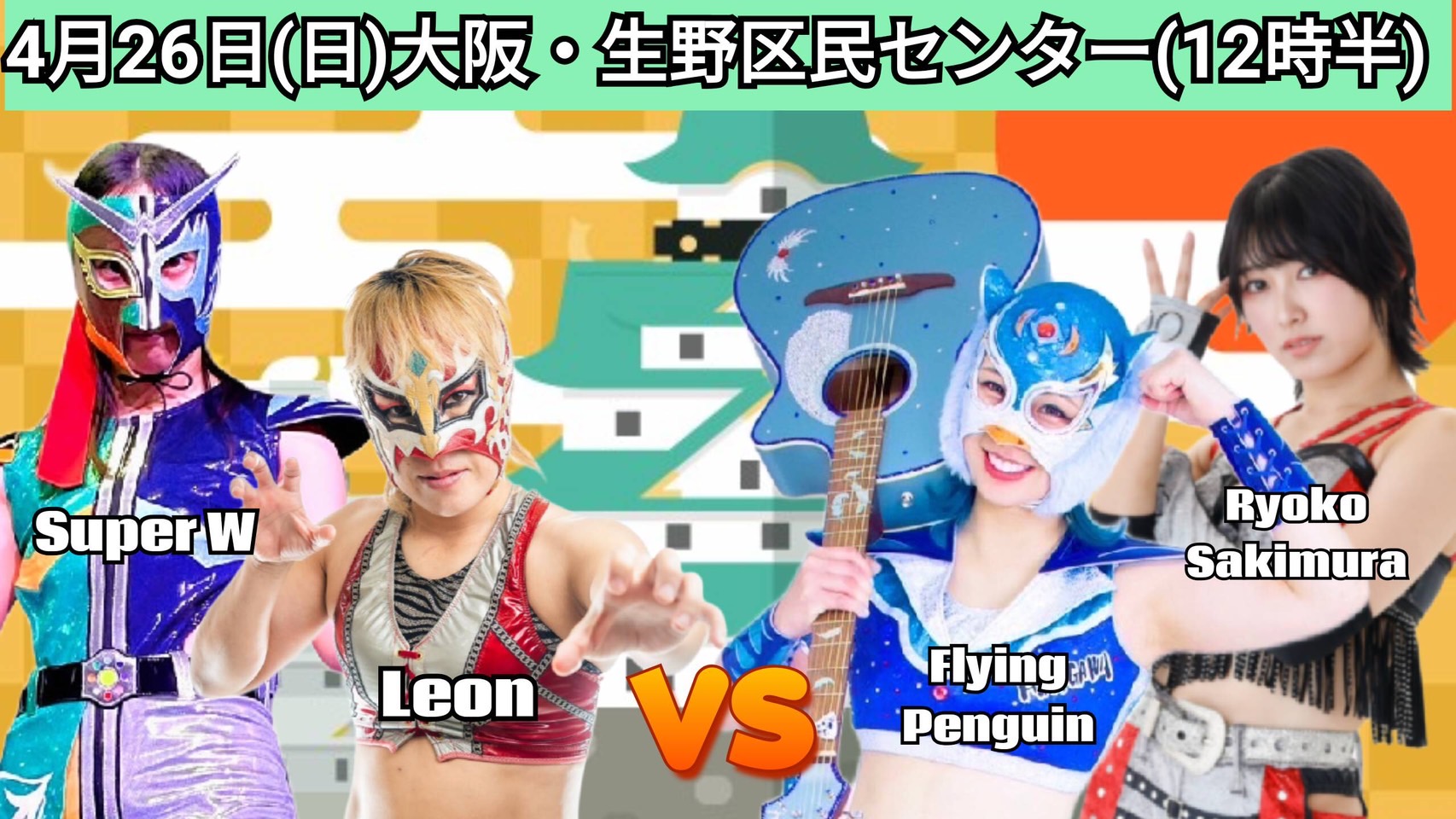 Leon&スーパーW(なにわ女子) vs フライング・ペンギン(なにわ女子)&咲村良子(なにわ女子)