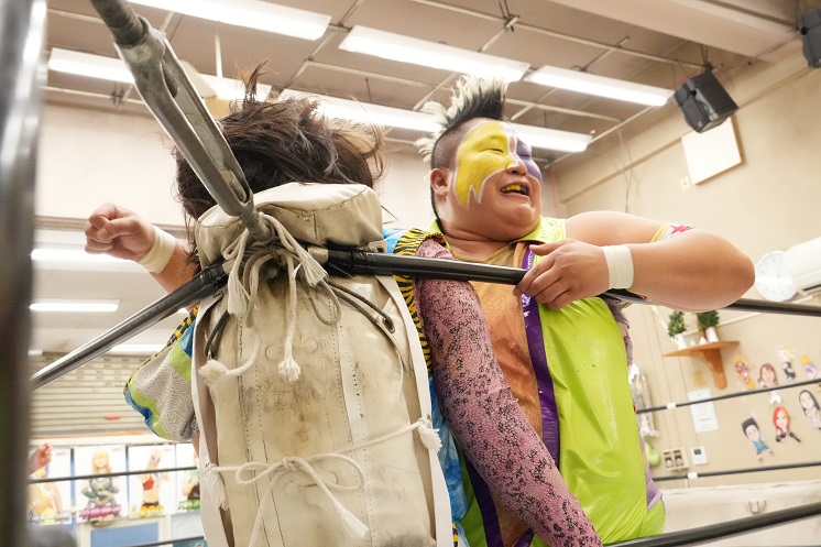 AKARIとはルチャスタイルのレスリング、鋼とはぶつかり合いで真っ向勝負を展開。